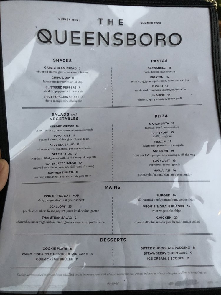 The Queensboro Menu